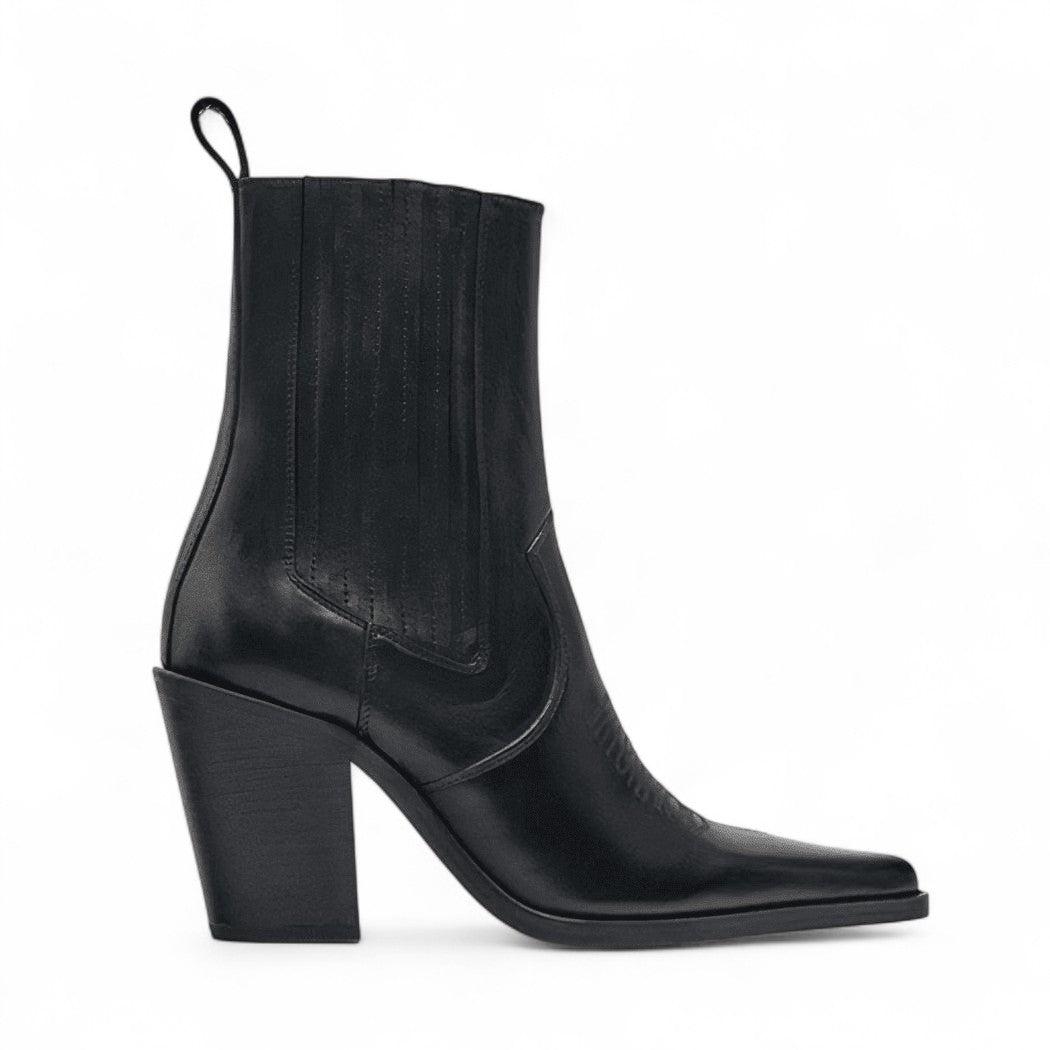 GIULIA – Santiag Courte Noire en Cuir Vegan L’élégance noire à l’esprit western Épurée, chic...