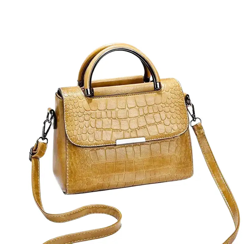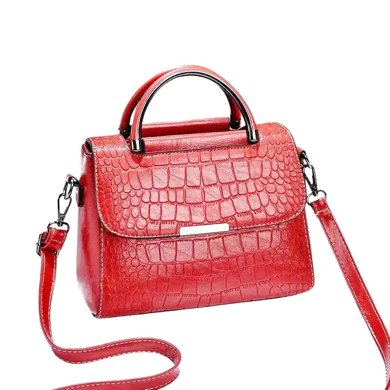 AMBRE - Petit Sac à Main Carré Croco en Cuir