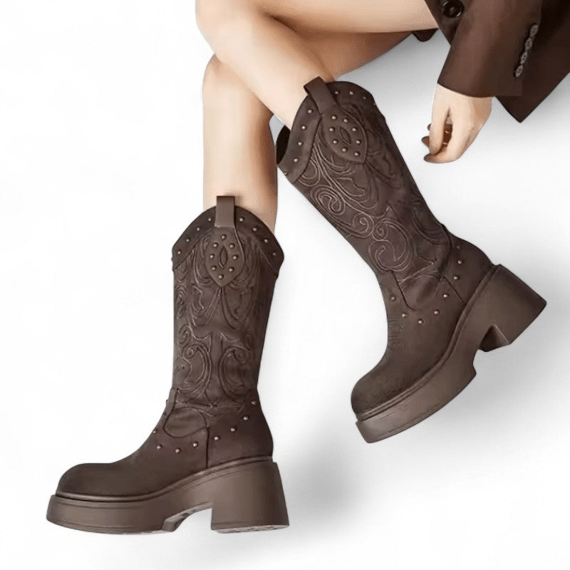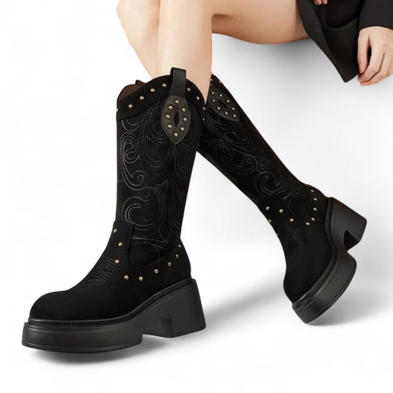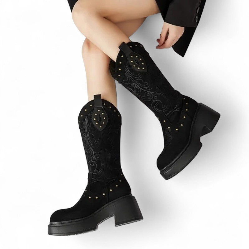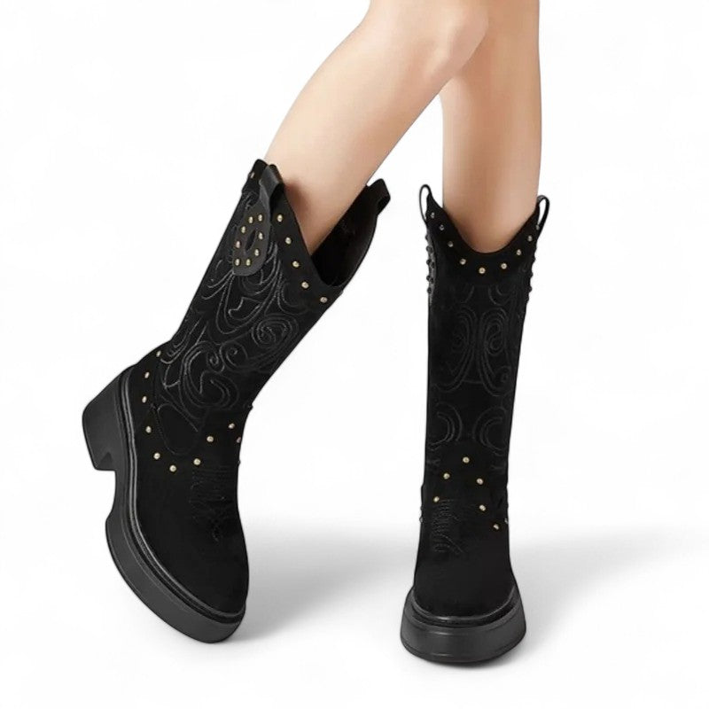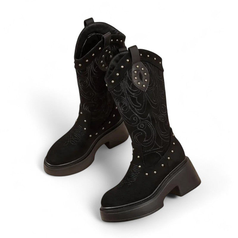 Anita - Santiag à Motif Cloutée et Semelle Épaisse