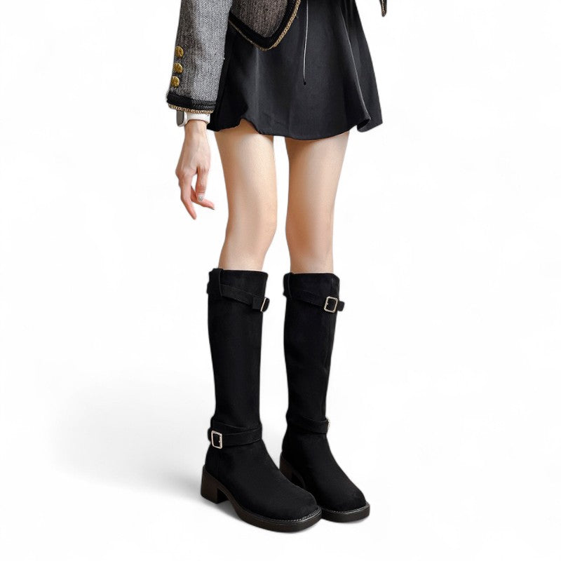 Britta - Botte haute en Daim à Ourlet – Botte pour le Quotidien, Raffinée et Pratique au Quotidien