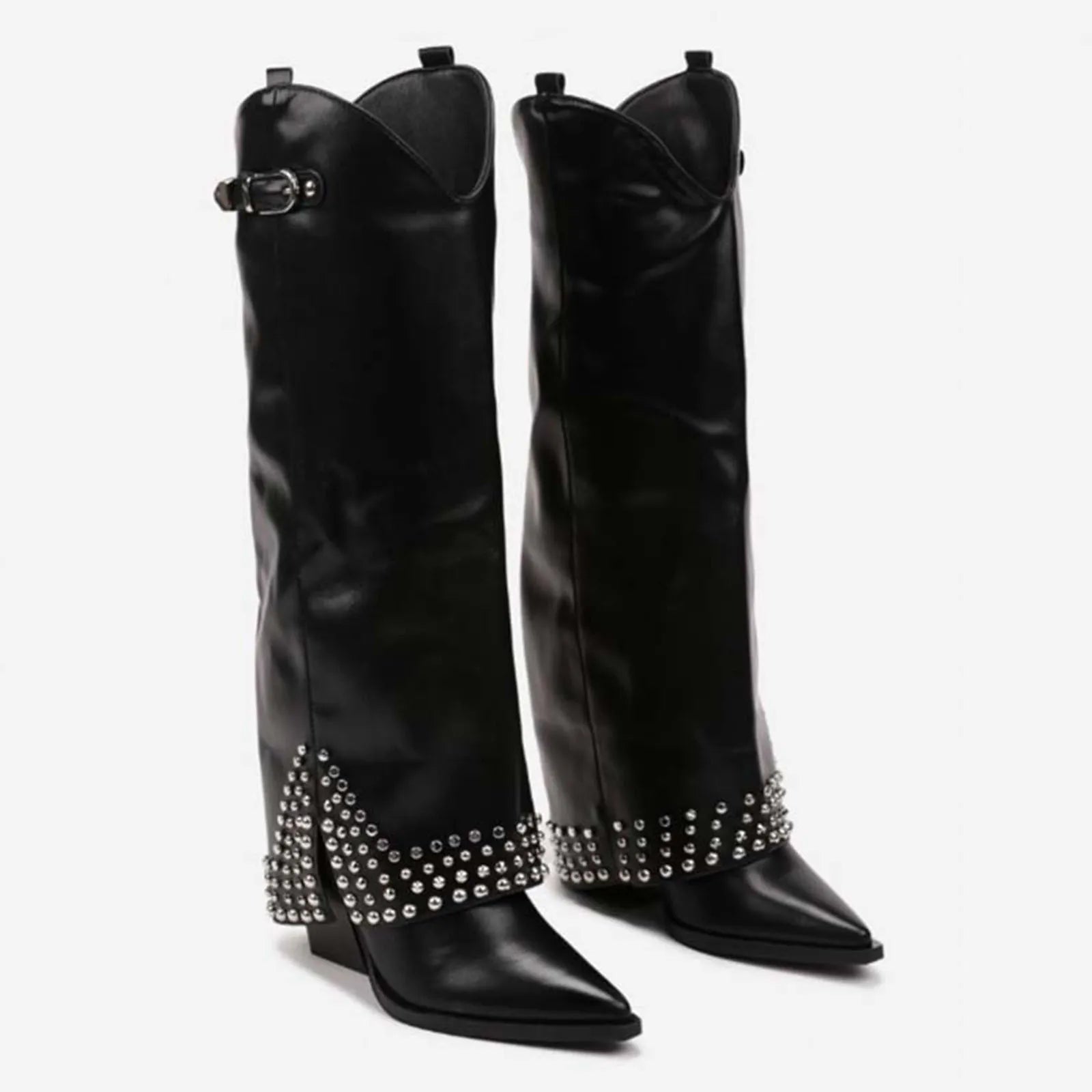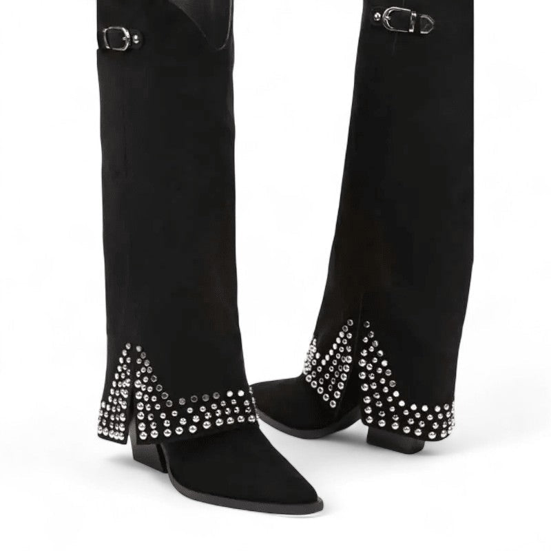 Ema - Santiag Longue à Talon et Rivets et Strass