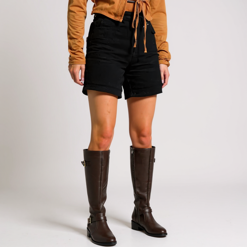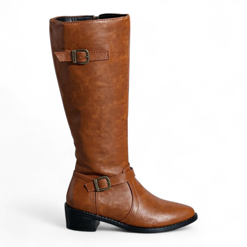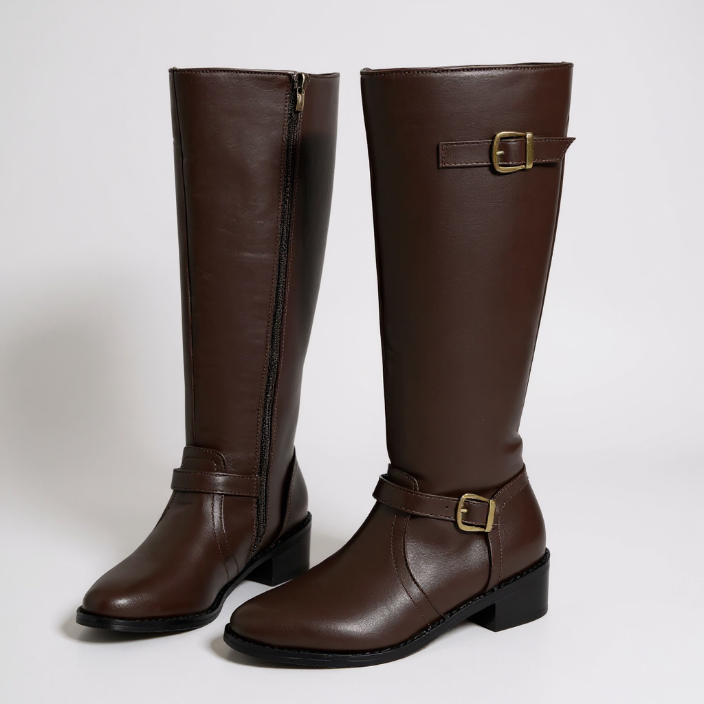 Fanny - Bottes Cavalières Femme Boucles Dorées Et Talon Bas Élégant – Botte pour Femme, Raffinée et Pratique au Quotidien