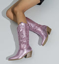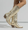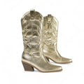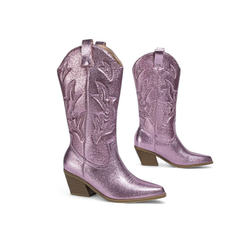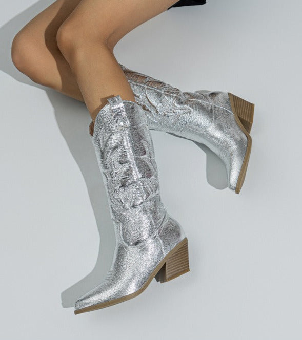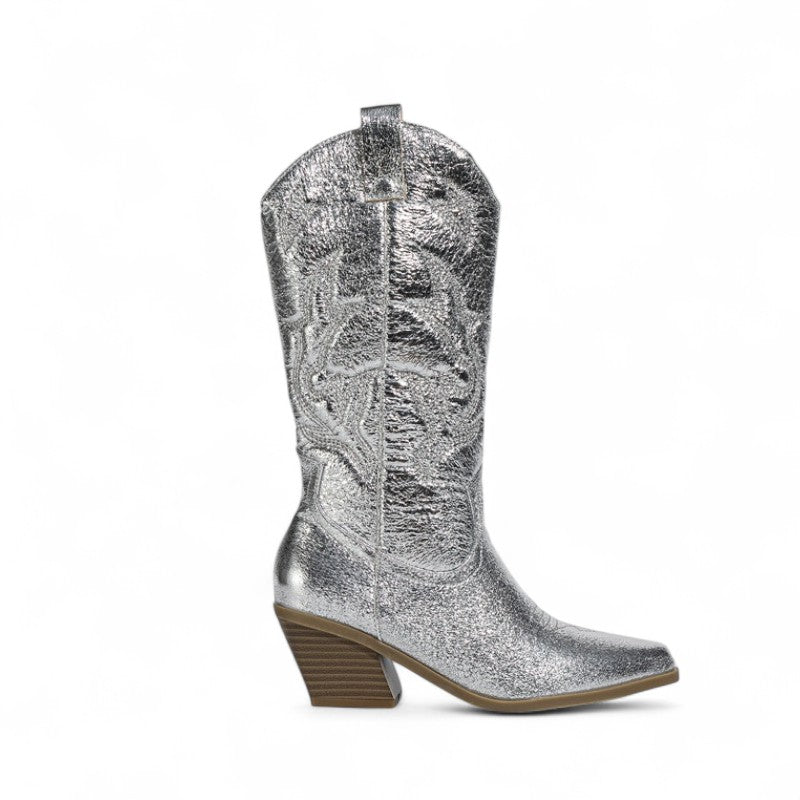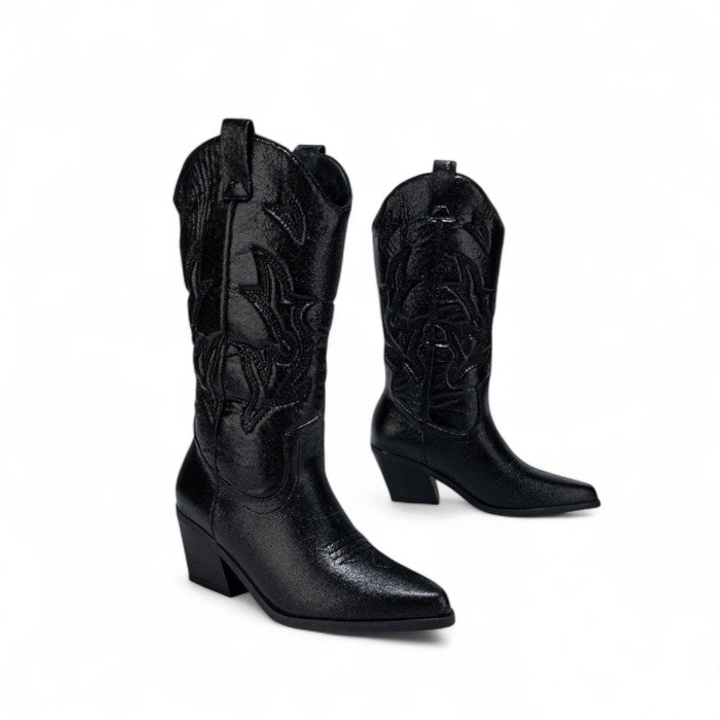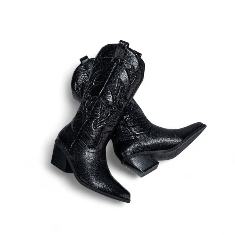 Leyla -Santiag Mi-Mollet À Paillettes séduit par son esprit chic et sa coupe mi-mollet. Réalisée en matière premium brillante, elle associe caractère et confort pour toutes vos tenues.