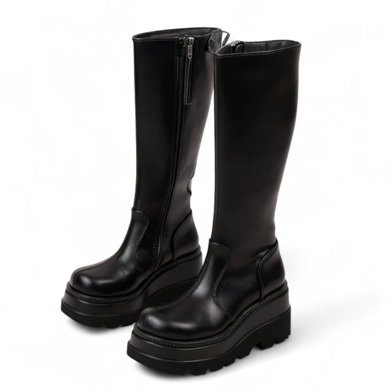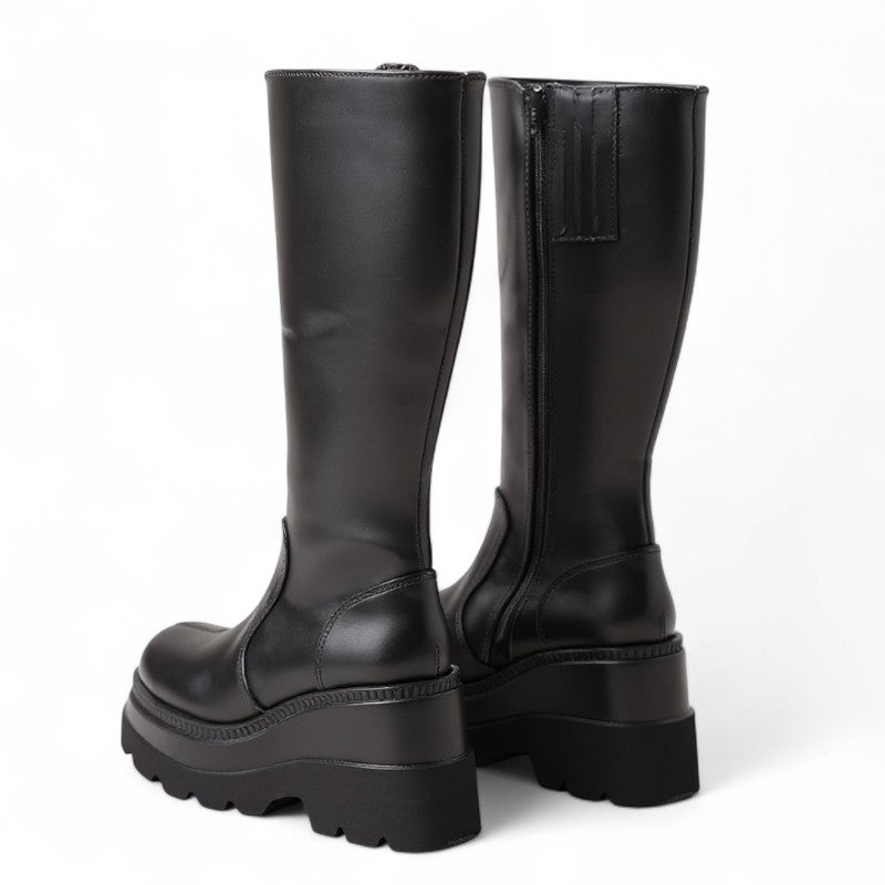 Sherley - Bottes Cavalière Plateforme Femme Noires – Botte pour Femme, Intemporelle et Fonctionnelle au Quotidien