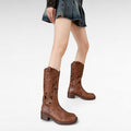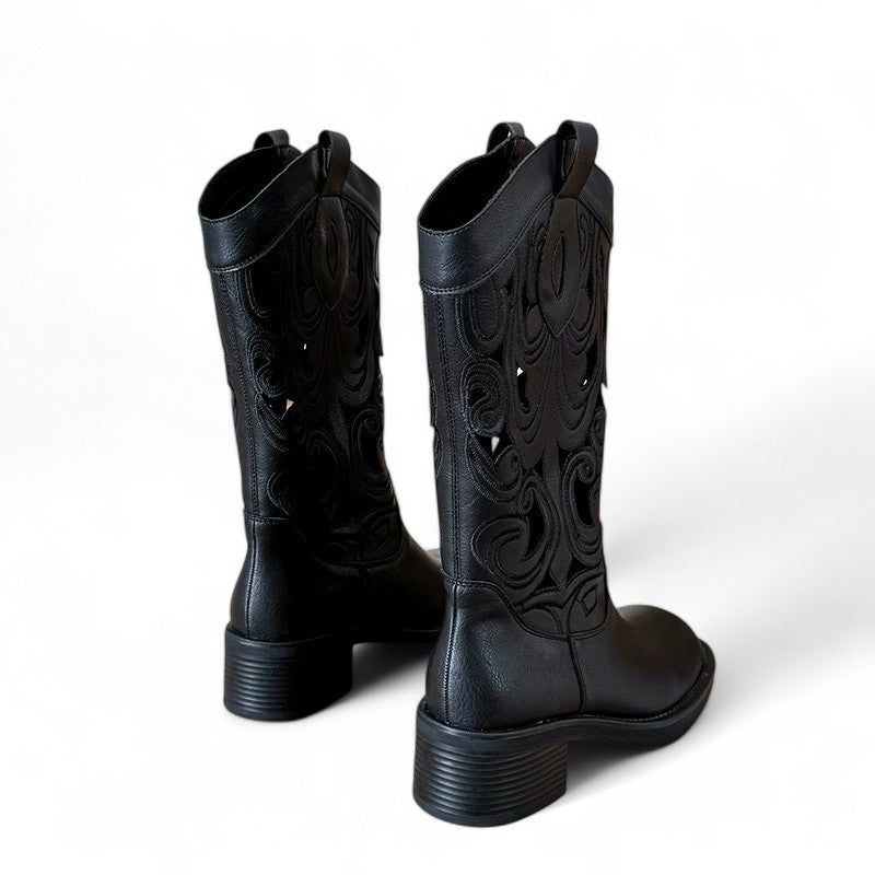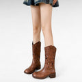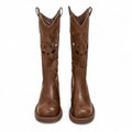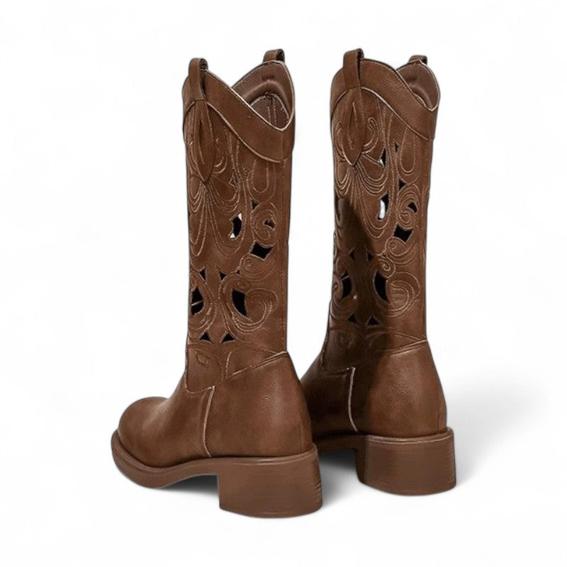 TIA – Santiag Femme Marron Mi Mollet avec Ouvertures Tendances