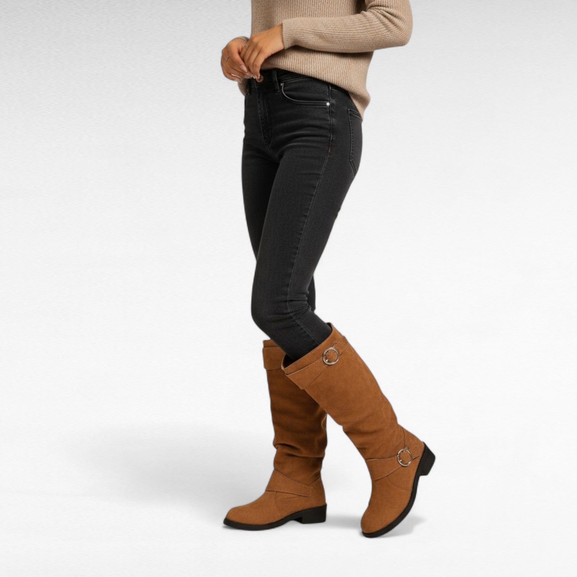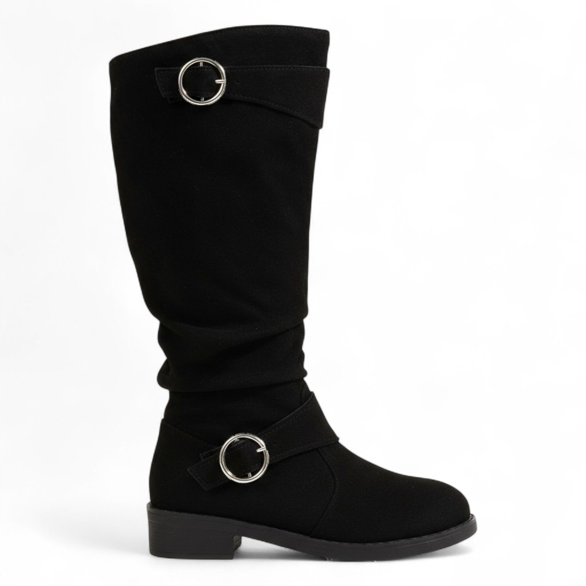 Yrva - Botte Haute Femme Plissée en Daim avec Boucle – Botte pour Femme, Raffinée et Pratique au Quotidien